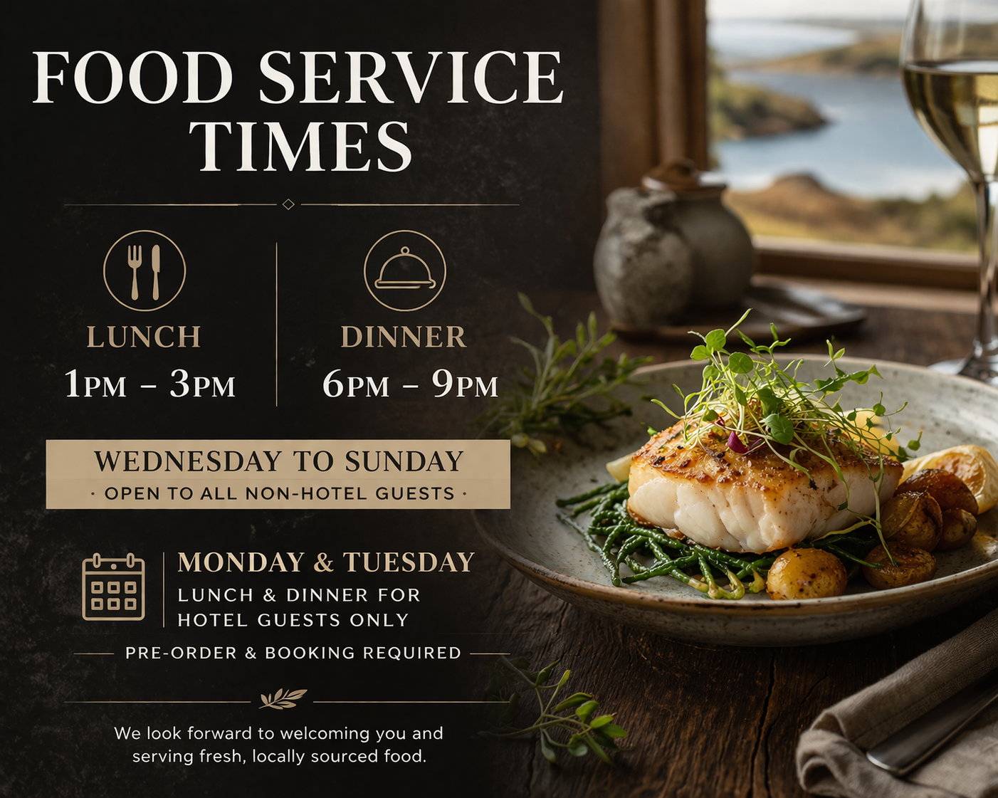 Our menu is shaped by what the island provides. Each week, dishes change depending on the freshest local ingredients available, as we work closely with growers, fishermen, and producers of all sizes across Rousay and Orkney. This commitment means you won’t always see the same menu twice, but it ensures everything we serve is fresh, seasonal, and full of character, with something to suit every taste.